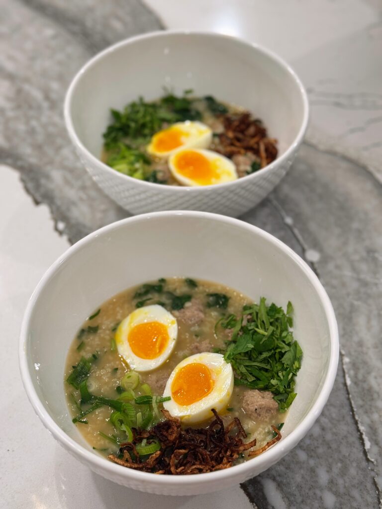 I visited Thailand nine years ago and have been missing it ever since. Bangkok was brimming with delicious food and I was so excited to try it all. But on my third day there, I got sick. This jok (or congee) nursed me back to health within a couple of days. Sick or not, this jok is delicious and I find myself craving it whenever the weather gets cold. It’s savory, salty, spicy, and super comforting.